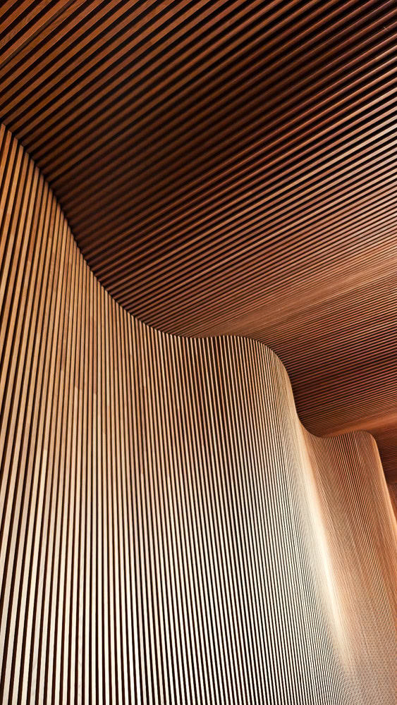 Binnenin speelt licht de hoofdrol. Het dak is een technisch huzarenstukje, opgebouwd uit duizenden schuin afgesneden buisjes die het daglicht filteren. Het resultaat? Zalen die baden in een zacht, natuurlijk licht dat elk kunstwerk alle ruimte geeft om te ademen — zonder storende schaduwen of harde contrasten.